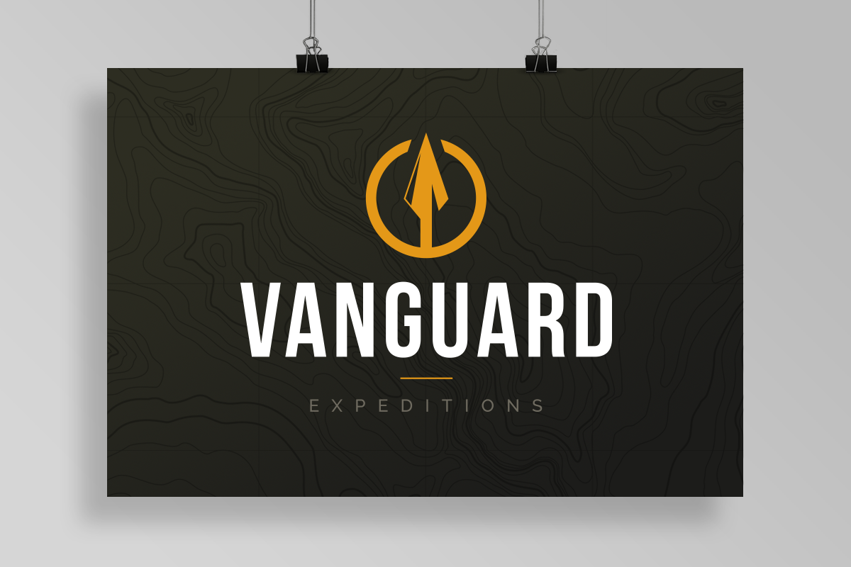 The biggest challenge of this project was the actual conceptualization of the organization. I really struggled to come up with a name that I felt represented what I hoped to accomplish – and I actually spent nearly a month just working through what I wanted to call my new endeavor. Eventually, I landed on the name Vanguard Expeditions because I felt it accurately embodied the idea of striking out and discovering new things both in the wilderness and within yourself. Once the overall concept was in place, the branding was fairly straightforward. I decided to go with a logo that was bold but simple – centered around the image of a spear as a nod to the true meaning of the word vanguard. I balanced this more militaristic imagery against the texture of a topographical map to soften it a bit and bring in the theme of exploration.